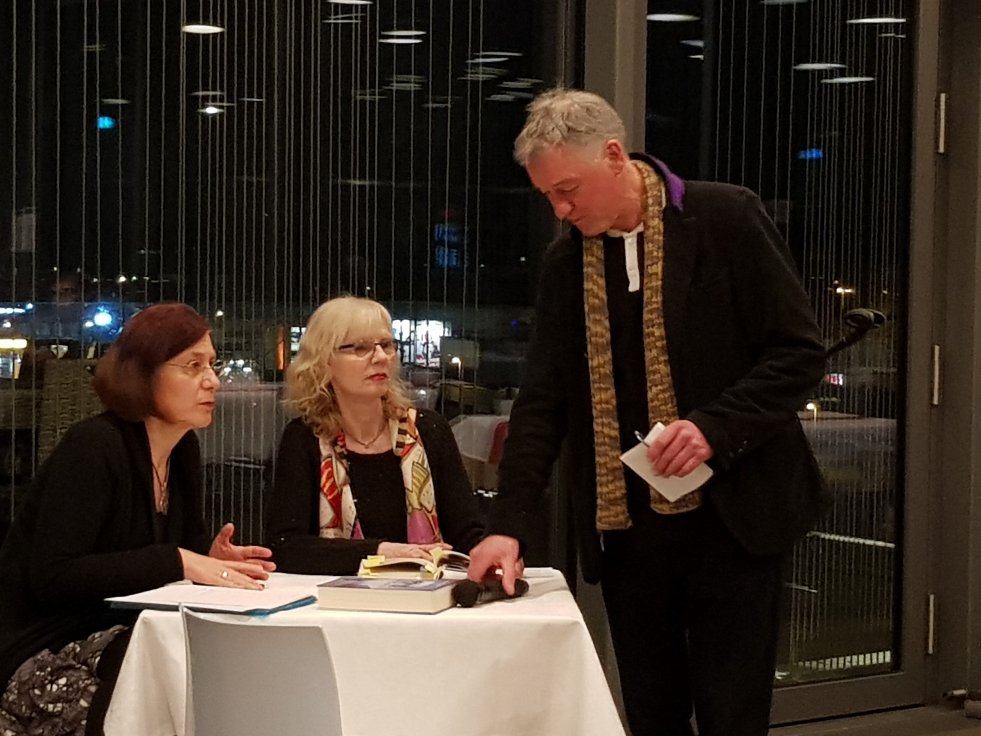 Ende Februar gab es in Herdings SkyLounge in Bocholt einen internationalen Leseabend mit meiner italienischen Kollegin Margherita Carbonaro und mir. (s. Foto auf dieser Seite und Infos unter dem Menüpunkt „act“). Die Resonanz war insgesamt so positiv, dass die Idee entstand, in Bocholt eine Reihe solcher Leseabende zu veranstalten und dabei ÜbersetzerInnen, AutorInnen sowie VerlegerInnen verschiedenster Nationalitäten auf die Bühne zu holen und mit einander ins Gespräch zu bringen. Dabei soll auch das Publikum mit einbezogen werden.